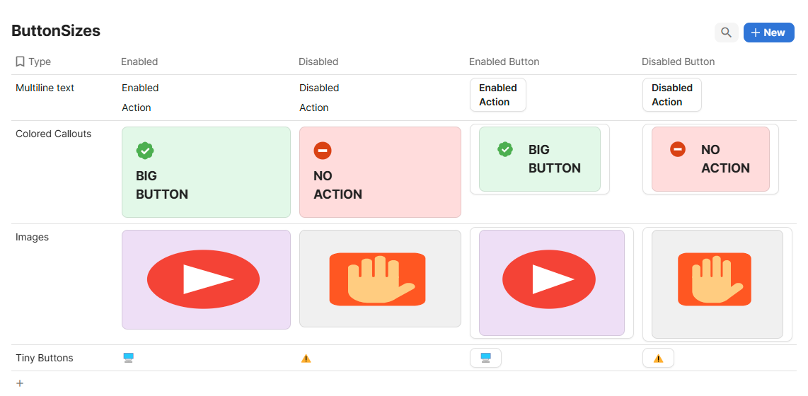 The trick is to set the formula for the label to use a TEXT or CANVAS cell which contains Text, Images, or whatever you like. The button’s size is determined by the size of the call itself!