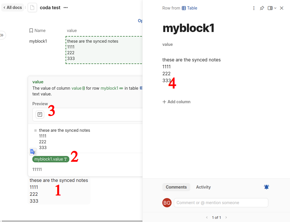 the first line on every page is a named formula that contains the description of the page (my ‘synced block’ text)