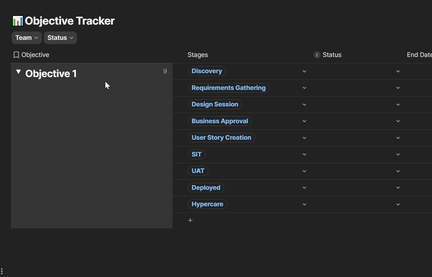 How to add automation where every time i create a new group, it will automatically create all the rows for the stages?