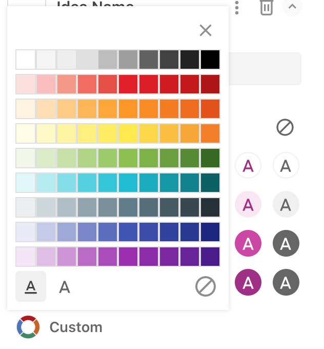 There are a few default options with different background colors, but you can customise text and background colors as you wish after you click “More” link and then “Custom” button: