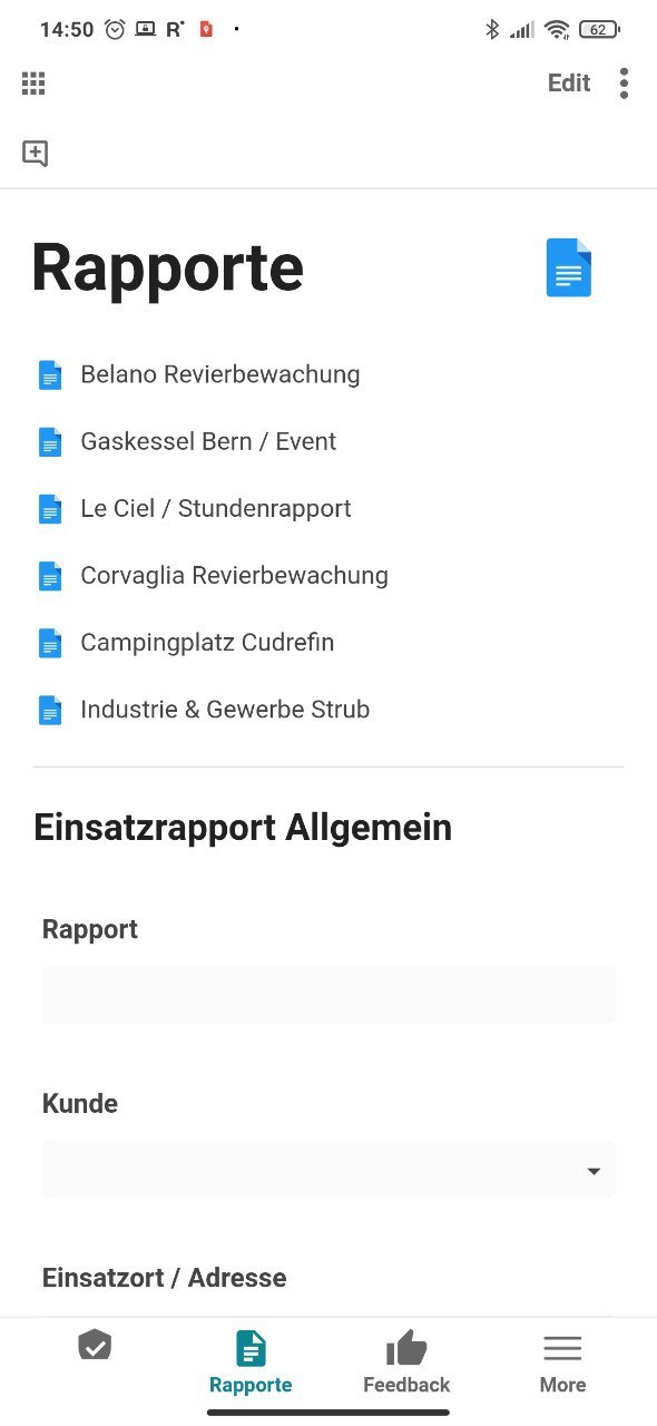 A security company that is used by their employees to fill out reports when they are done on a place. There are two different views of the apps. Employees have tabs and customers have tabs. Customers can see which places have been checked already. -