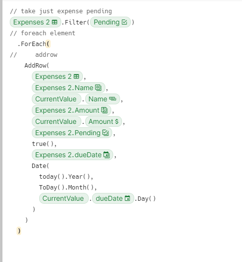 my use case is an expenses table. and i’m trying to duplicated the rows for one moth to the next month using a button. (see Expenses Take 2)