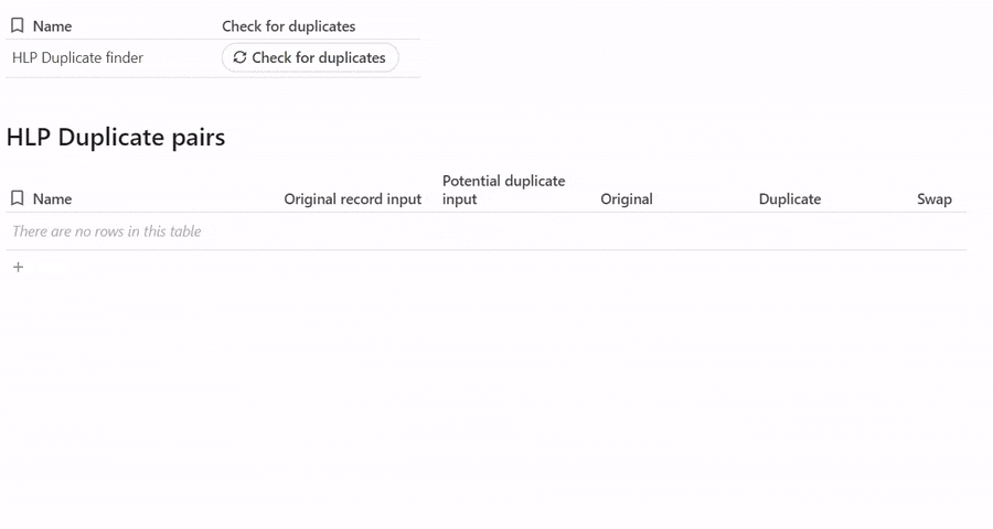 The first solution is best suited if you want to check on duplicates as you’re entering data into an already big table. I did this for a client that had a table of 8000+ contacts and only wanted to check whether any of the recently added bunch could be overlapping with the existing ones. They would enter a name and an email and press a button inline in that table. It would find if anything is overlapping with the current row, and they could decide whether to keep filling out the row or discard it and move onto the next one.