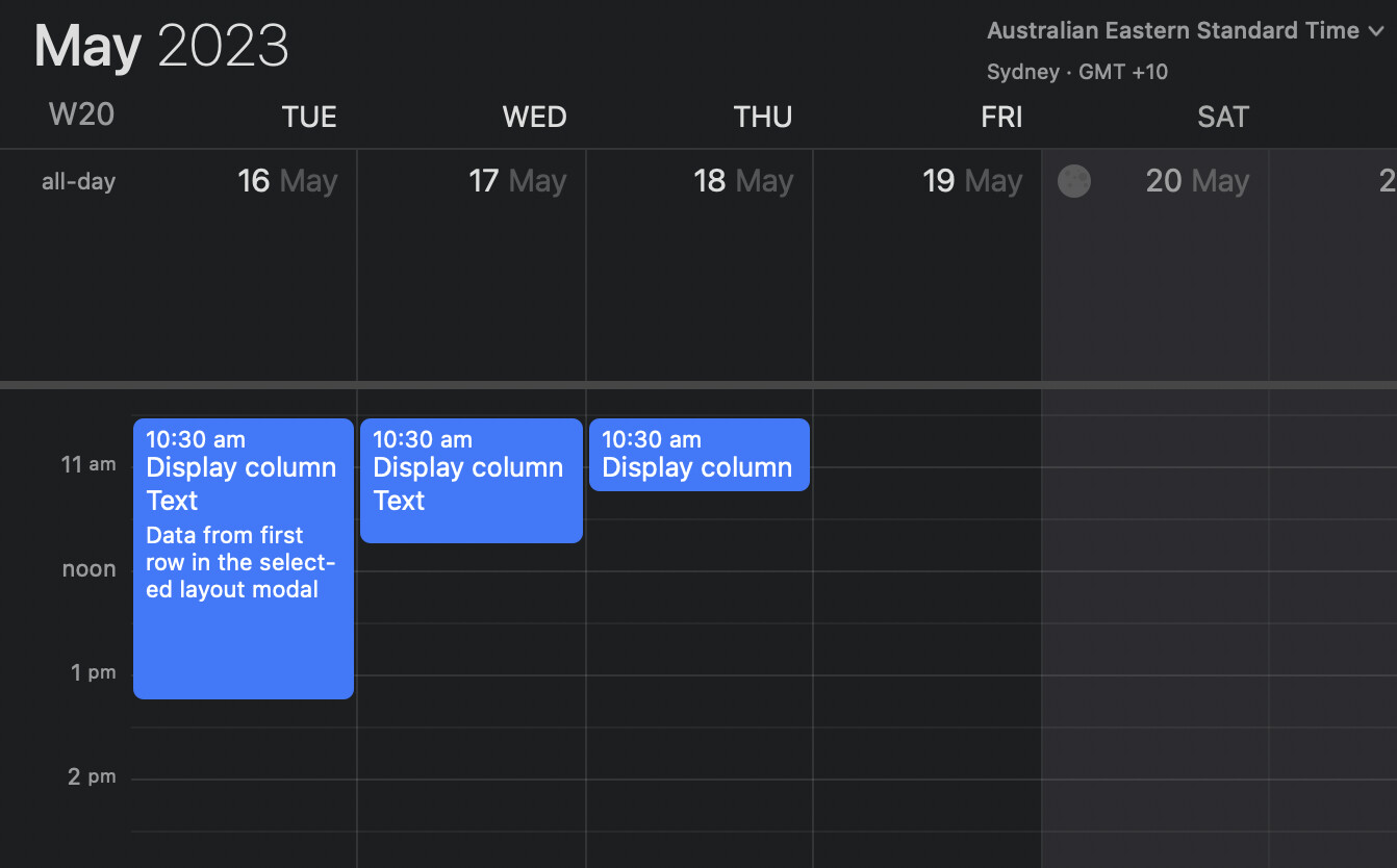 - For each calendar event, place the event time to the top of the event instead of below the display column text