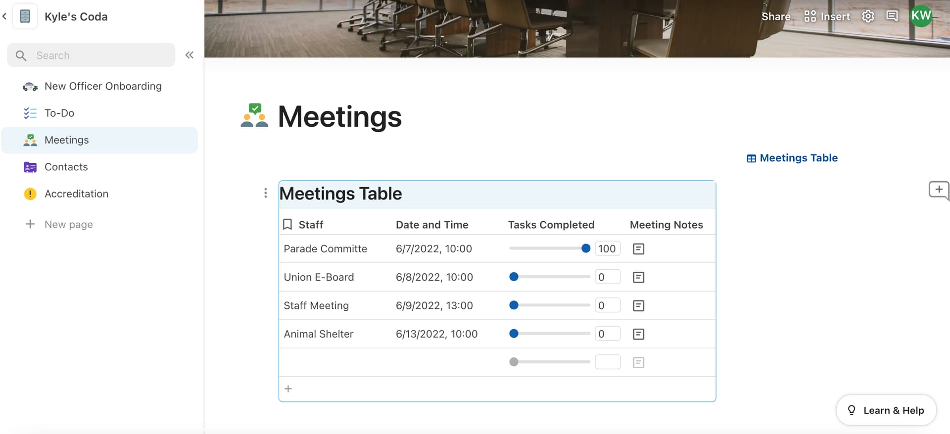 I am fairly new to Coda and I’m having a difficult time printing/exporting my notes from a canvas column. I created a table to organize my meetings which is pictured below.