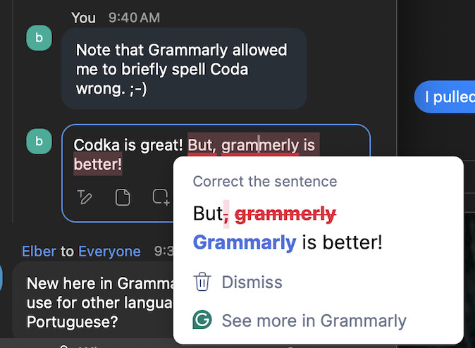 I was so bored by this meeting that I started to play with Grammarly in the shared chat. Ironically, I discovered Grammarly isn’t tuned with a bias toward ways to misspell Coda. [sigh]. Sure, this is petty, but it’s so easy to instrument AI to lean into certain brands, and they still haven’t even considered it.