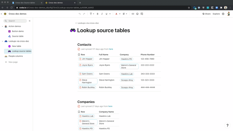 Cross docs of different views of the same table -> whenever you change something in one synced table, you have to sync the next table to see the changes