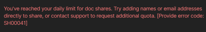 I am also hitting a You’ve reached your daily limit of doc shares. when I try to make the document available for everyone with the link.