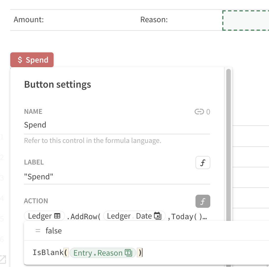 I can not get a button to Disable based on a table having it’s values filled in. I was trying to base it on multiple cells, but even when I reduce the complexity down to one cell, it does not work.