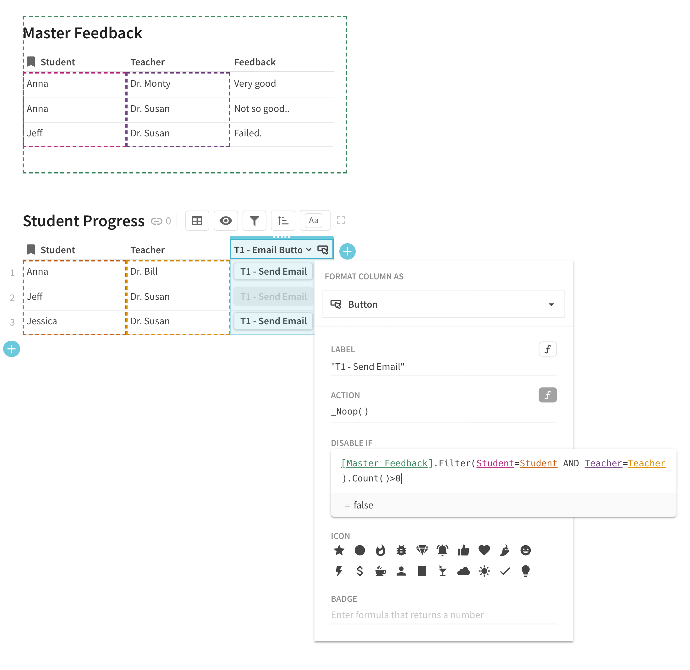 ==> Disable If: [Master Feedback].Filter(Student=Student AND Teacher=Teacher).Count()>0