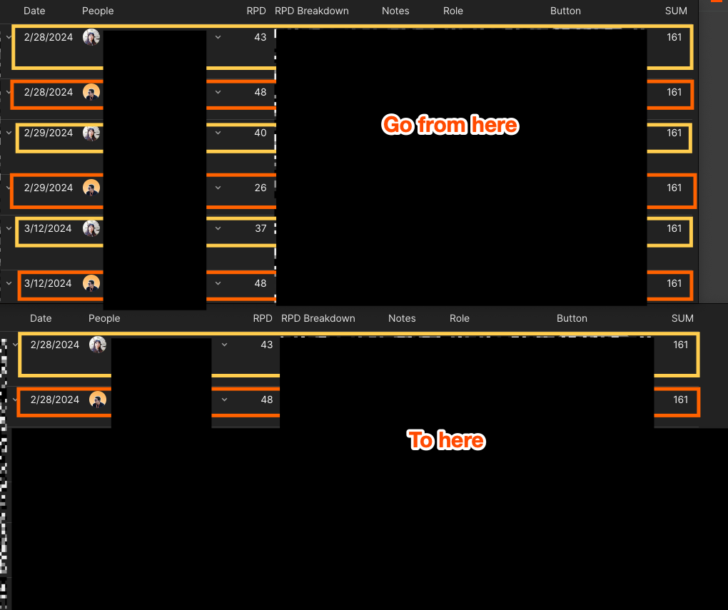 Context: I track the number of email replies our team sends in a table, per day. I’m filtering based on the last 7 days, and I would like to know the sum of replies sent in those 7 days, and only see one row per team member.