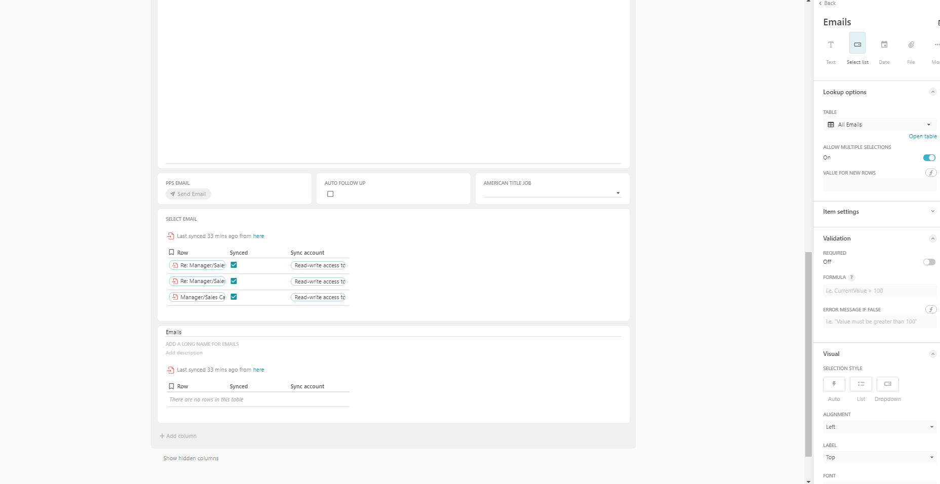 My goal is to use gmail packs to sync emails to a table in coda where I can manipulate the columns, then display that gmail table in the rows of my Sales table.