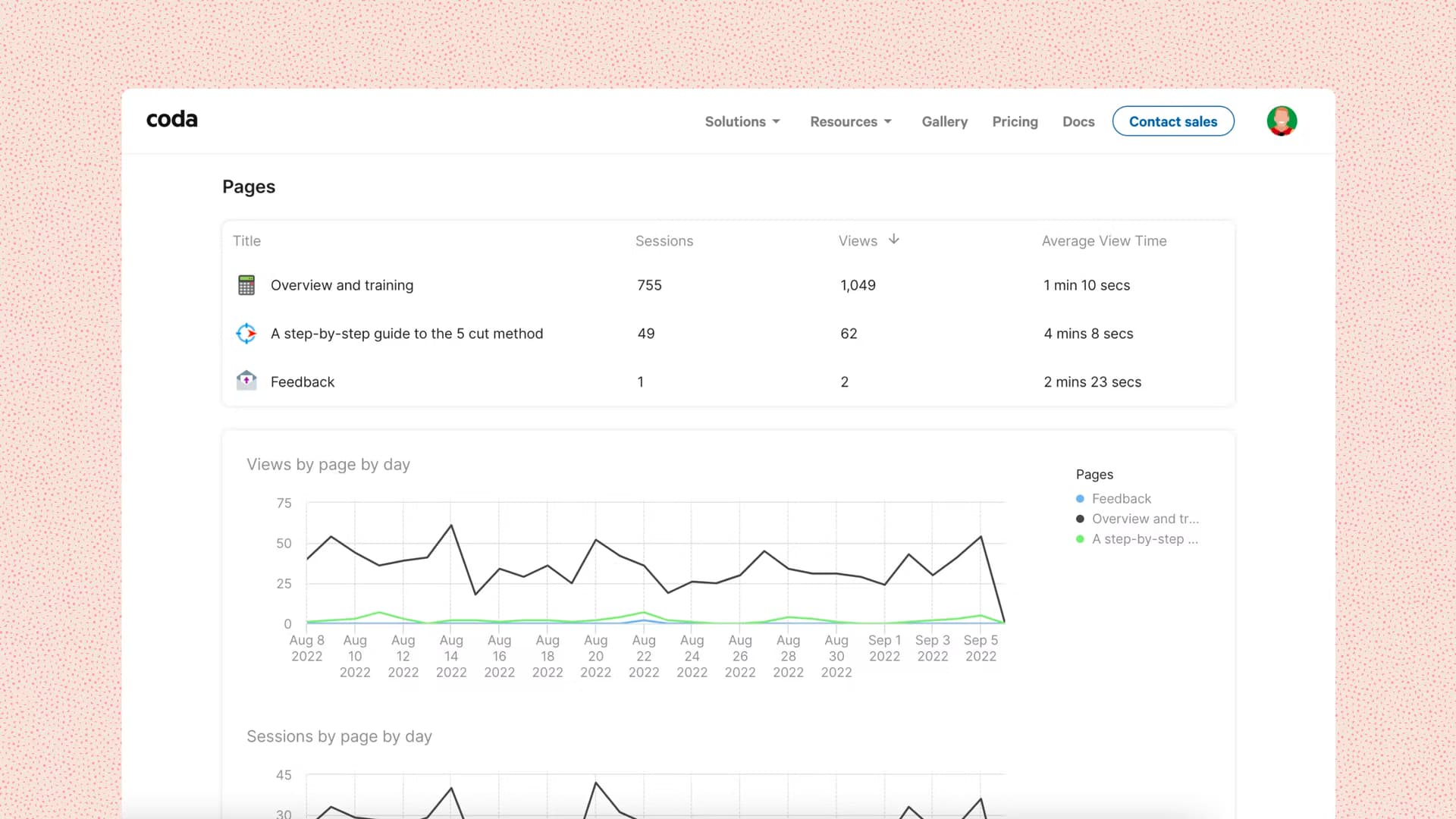This is great but without being able to page views on Teams it makes it really difficult to validate how much time I spend on building out Coda Docs. Google Docs made this so easy and was so valuable. I’m about to embark on building out a big resource library and currently have no way of tracking the engagement - basic analytics like this feels like it should be available to all plans.