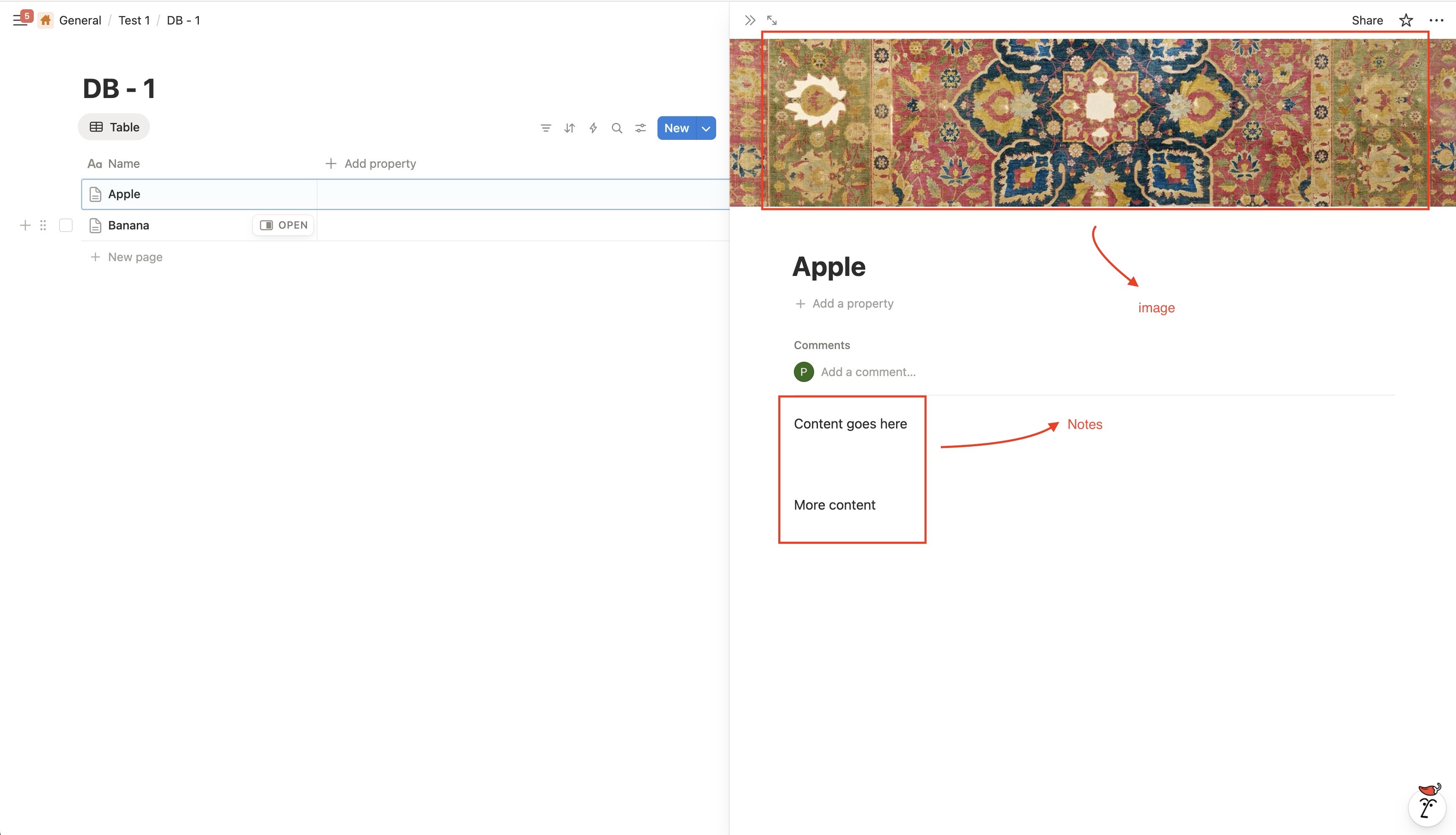 - Pages at the top level of the database items but yet no content.