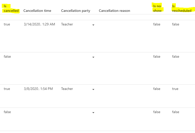 The difference is that in the “before” there are four Checkbox columns, and in the “after” it’s the same four logical columns but with their type changed to Text.