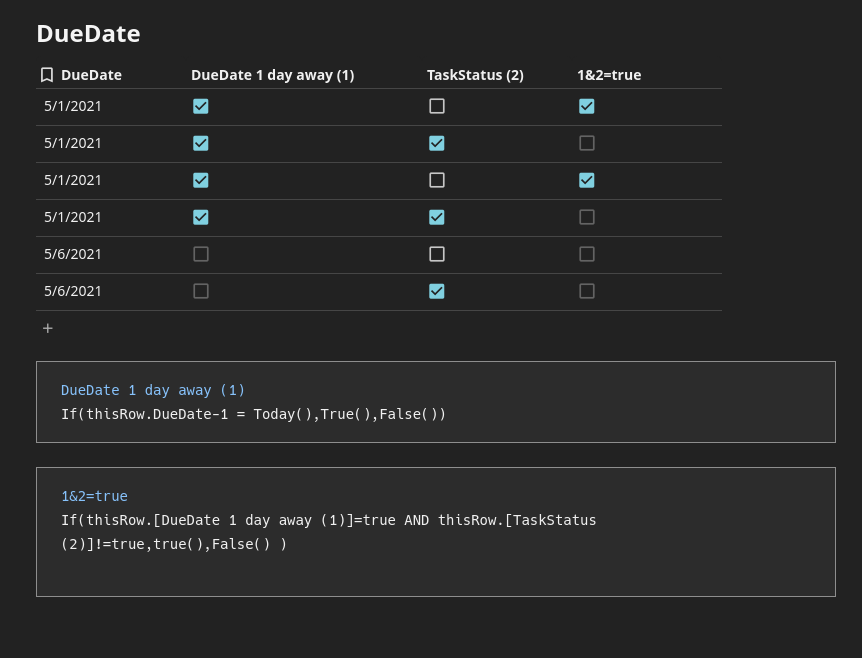 DueDate-1 = Today() → DueDate-1 is “yesterday”