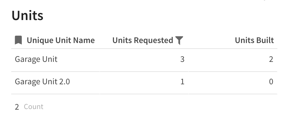 I am trying to list the elements in a table, but I’m having a problem. I want to only list each Unique Unit Name once. I have a key row that has a double listing and I only want a single list from the double list. I want it to only look like this: