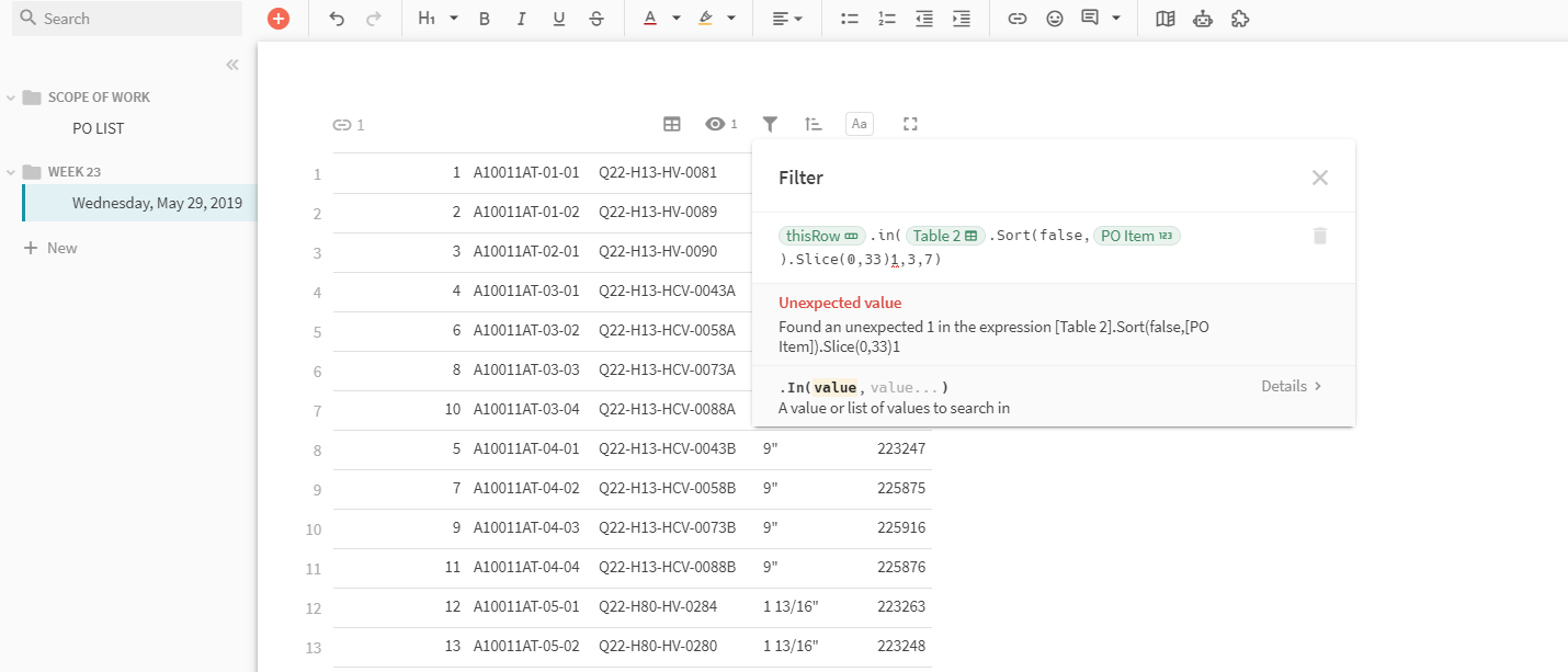 recently, after 20 weeks of work I was told that my main list had some mistakes so with the program Im using (onenote)I had to go back to each week folder/tab and then to each section/page and fix the table extract one by one in all 20 weeks, what I see in coda is that going to the main table and fixing it will change all my table views I just need to be able to chose from that main table the items i will be working on that day and insert just those rows to my table view
