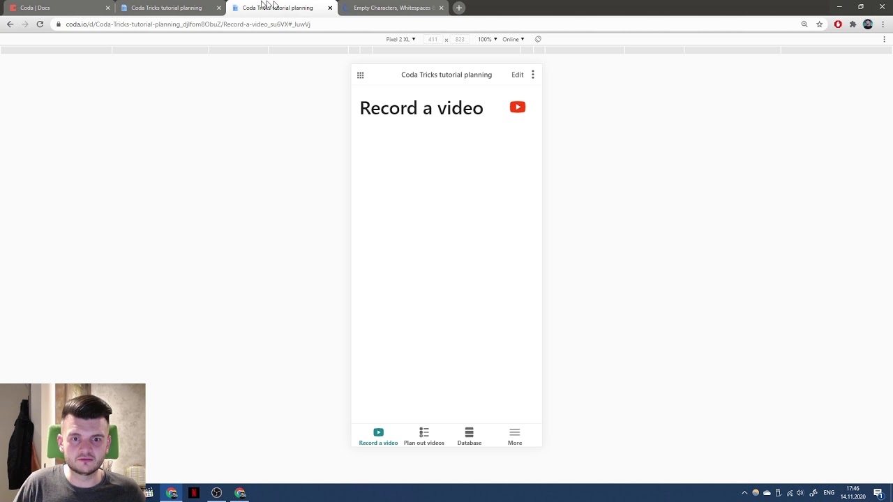 I recorded a video how I built a doc to help me record Coda videos.